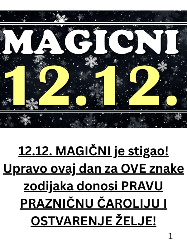 Za neke od njih, 12.12. biće prava praznična čarolija, puna prilika koje ne treba propustiti. U ovom članku ćemo se fokusirati na to koji su to znakovi koji će osetiti najjaču snagu ovog dana i šta ih tačno očekuje.