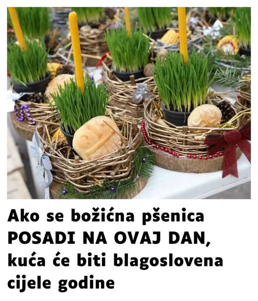 - Pšenica, kao simbol života, rasta i obnove, uvijek je imala posebno mjesto u božićnim danima. Tradicionalno, božićna pšenica se sadi uoči praznika svetog Nikole, 13. decembra, ili na dan svete Lucije, 13. decembra prema katoličkom kalendaru, dok u nekim krajevima običaj nalaže da se posadi na dan svete Barbare, 4. decembra. Ljudi vjeruju da upravo ti datumi nose posebnu energiju i da ako se pšenica posadi tada, kuća će biti blagoslovena zdravljem, obiljem i mirom tokom cijele naredne godine. Svako zrno pšenice koje nikne tada postaje simbol sreće i napretka, pa se stoga dan i način sadnje pažljivo biraju, jer se vjeruje da vjera u taj čin ima ključnu ulogu u njegovom uspjehu.