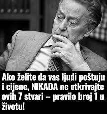 Ključno pravilo života je da ne otkrivamo sve o sebi. U svetu u kojem informacije igraju ključnu ulogu, mudrost je u tome da znate kada treba deliti nešto i kada treba da zadržite određene stvari samo za sebe. Ako želite da vas drugi poštuju i cene, ostavite dozu tajanstvenosti oko sebe i neka vaša dela govore više od vaših reči.