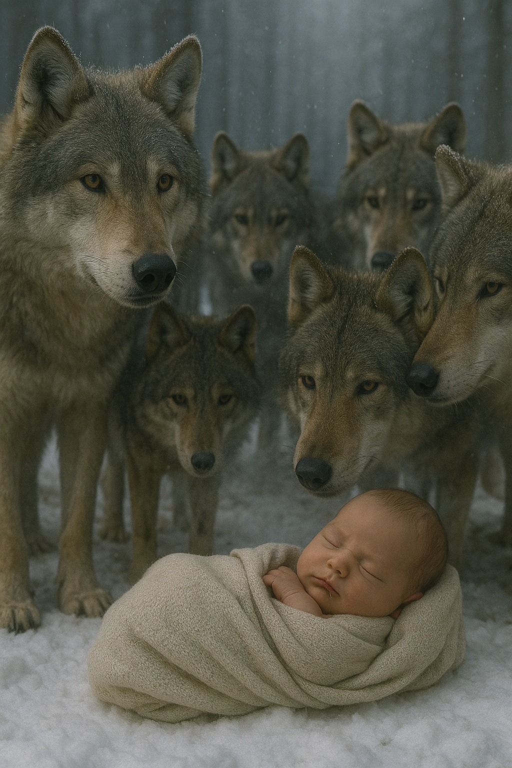 - Dok je Anna vrištala i tražila svoje dijete, šuma je živjela svojim divljim ritmom. Usred svega toga, čopor vukova koji se vraćao u svoju jazbinu, naišao je na male stvorenje u snijegu. Vođa čopora, starija vučica imenom Luna, bila je ta koja je prvi primijetila izgubljeno dijete. Počela je mirisati bebu, pomilovala ju je nosom, ne napadajući je, već obasjavajući svojom prisutnošću. Luna, zajedno s ostalim vukovima, stvorila je štit oko bebe, a kako je noć prolazila, oni su ostali uz nju, dajući joj osjećaj sigurnosti.