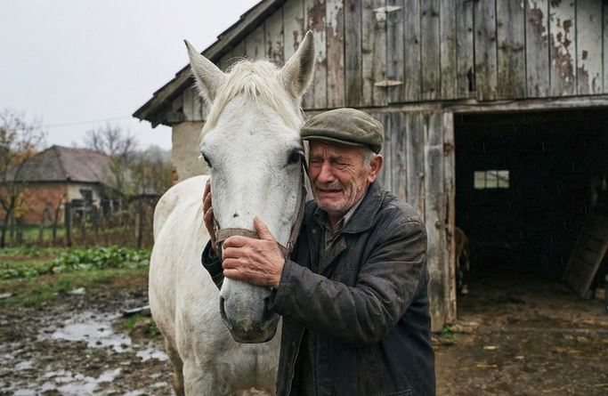 I tada se desilo ono što se čini nemogućim. Pred njim nije stajala uspomena, niti san. Pred njim je bio Sokol. Ne mršav, ne slomljen, ne u klanici – već snažan, njegovan, dio terapijskog programa. Bijeli konj, isti onaj kojeg je prodao sa suzama, sada je stajao živ i dostojanstven.