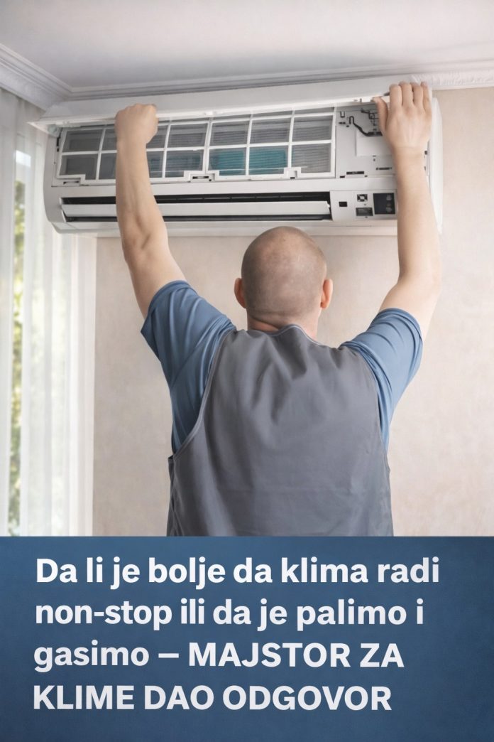 Zašto je stalno paljenje i gašenje klime loše? Klimatski uređaji nisu dizajnirani da stalno rade u “šok režimu”. Najveću energiju troše kada naglo hlade ili griju prostor, pokušavajući brzo ispraviti veliku temperaturnu razliku. Ako se klima stalno gasi i pali, mora se truditi više da bi postigla željenu temperaturu, što je energetski neefikasno.