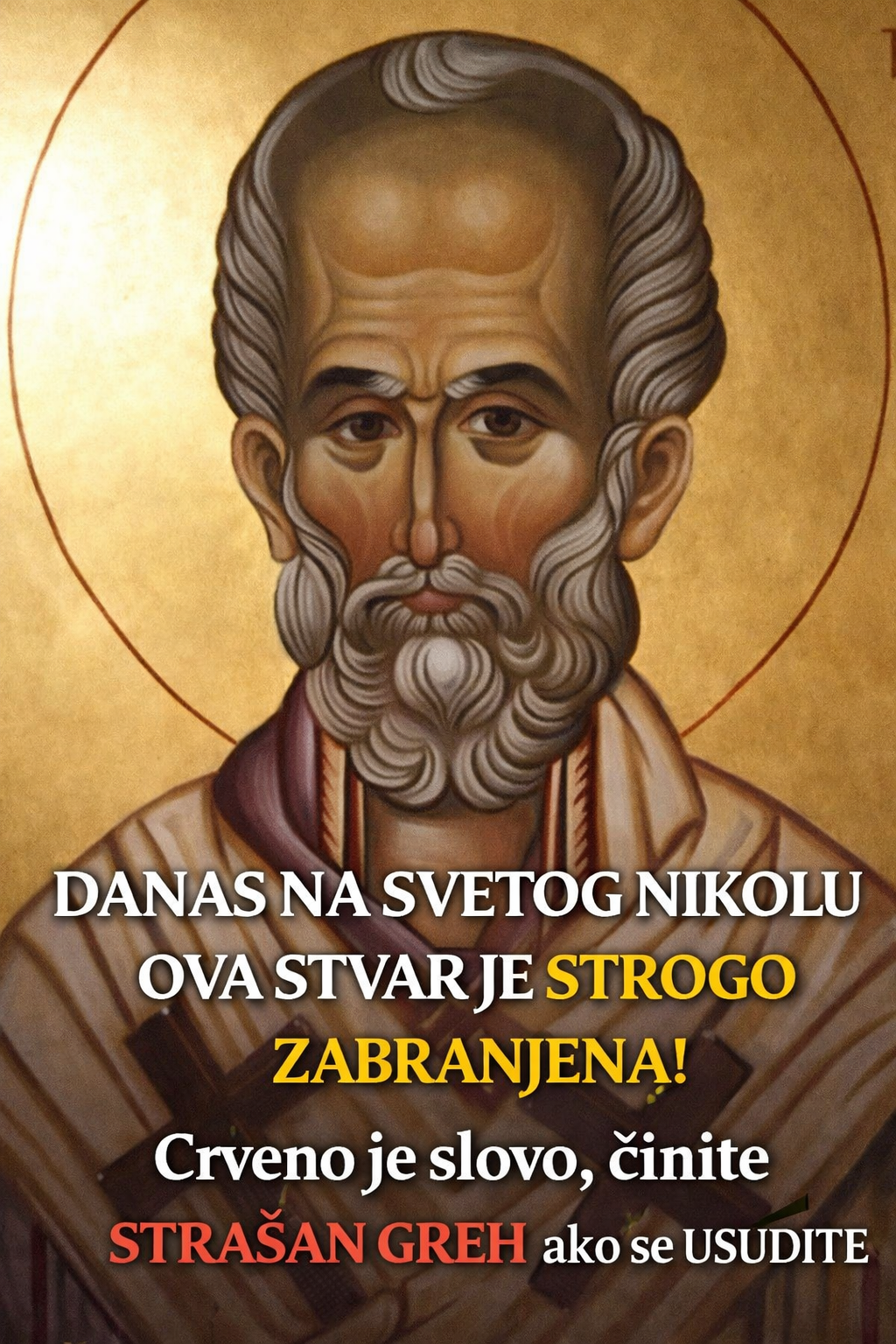 - Iako je Sveti Nikola u istoriji poznat po svojim čudima, danas se veruje da je to dan kada ne treba da se svađamo. Verovanje da Sveti Nikola donosi mir i pravdu duboko je ukorenjeno među Srbima. Na Nikoljdan, mnogi se trude da ostanu mirni i da ne podižu glas, jer smatraju da je to dan u kojem treba da obeleže vrednosti koje je Sveti Nikola podučavao – ljubaznost, skromnost i pomaganju onima kojima je pomoć najpotrebnija.