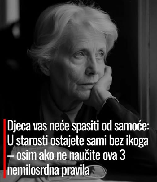 - Samoća u starosti nije nešto što morate prihvatiti kao neizbježnu sudbinu. Ako naučite ove tri nemilosrdna pravila i primijenite ih u svom životu, moći ćete živjeti ispunjenim životom, čak i kada vaša djeca odrastu i krenu svojim putem. Neka vam budući dani budu ispunjeni smijehom, prijateljstvom i unutarnjim mirom, jer ćete znati da ste stvorili život koji vas ispunjava, neovisno o tome tko je uz vas.
