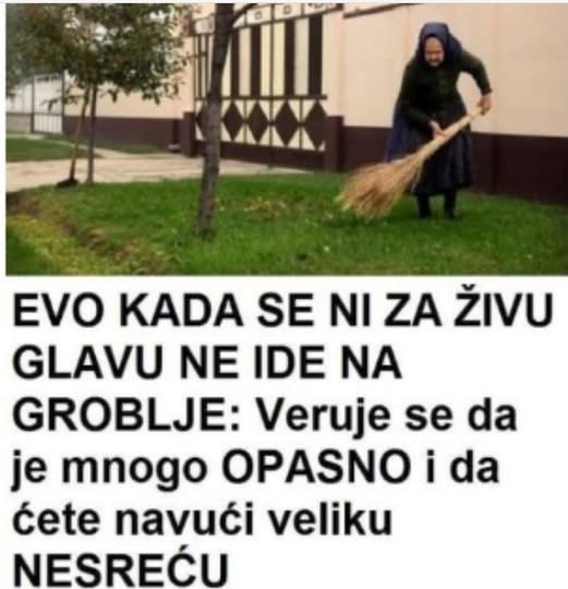 - Iako se običaji razlikuju, jedno pravilo ostaje isto gotovo svuda: noću se na groblje ne ide. Ovaj stari običaj ne zasniva se samo na mistici nego i na praktičnim razlozima – ljudi su nekada živjeli bez rasvjete, pa je noćna posjeta groblju nosila opasnosti od povreda, pada ili susreta sa divljim životinjama. Ali kako je vrijeme prolazilo, praktičan razlog prerastao je u snažno vjerovanje koje se i danas poštuje.