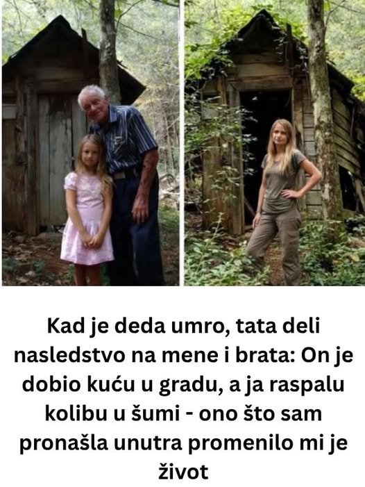 Bratu je pripala porodična kuća, dok sam ja nasledila dedinu lovačku kolibu u šumi. Iako se brat smeštao u veliku kuću i zadirkivao me govoreći da nisam dobila ništa osim raspale kolibe, u mom srcu to mesto imalo je mnogo veću vrednost nego što su svi verovali. Koliba nije bila samo drveni objekat, bila je to veza sa prošlošću, sa dedom, koji je tu proveo mnogo vremena sa mnom.