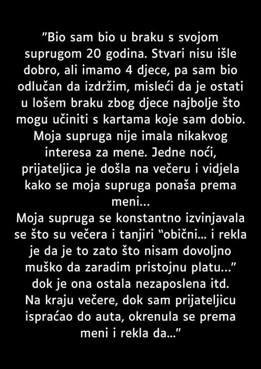 Ova priča nije samo priča o razvodu, već o važnosti postavljanja emocionalnih granica i uvažavanju sopstvenih potreba, kako bi se obezbedio zdravi život za sve. U njegovom slučaju, razvod je postao put ka zdravlju, ne samo za njega, nego i za njegovu decu, jer je bio siguran da je zaslužio bolje odnose i više poštovanja u svom životu. Razvod, iako uvek emotivno težak, u ovom kontekstu bio je oslobađajući.