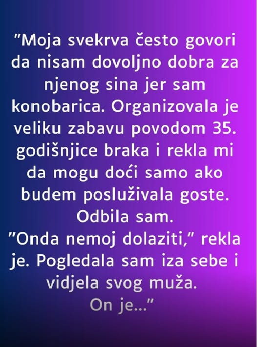 Nisam mogla da verujem kad mi je svekrva rekla da mogu doći na zabavu, ali samo ako budem posluživala goste. …..