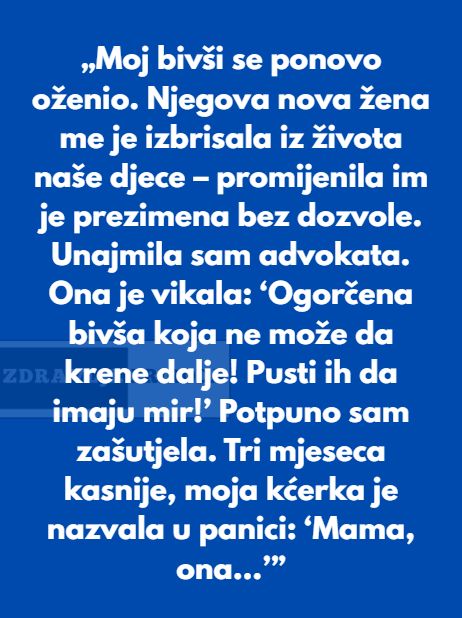 Marija je reagovala kao svaka majka koja je izgubila deo svog sveta – unajmila je advokata, odlučna da ponovo stvori most između sebe i svoje djece. No, dok je ona verovala da je jedini način da se izbori za svoju poziciju pravna bitka, njen bivši muž i njegova nova žena nisu imali mnogo razumevanja za njene bolne dileme. Nova žena mu je čak rekla da je ona samo „ogorčena bivša žena koja ne može da krene dalje”, dok je insistirala da njena djeca imaju pravo na mir.