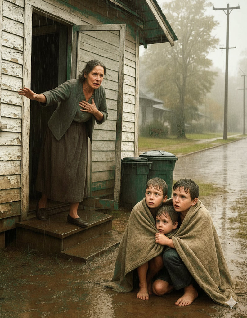 - U toj kući je živela Evelyn Carter, udovica srednjih godina. Sa umornim očima, ali rukama koje su i dalje znale kako se pravi kukuruzni hleb i kako se tješi u tišini, Evelyn je danima prolazila kroz život, svaka stvar u njenoj svakodnevici imala je svoj ritam. Niko nije znao da je njena tišina skrivalo mnogo toga. Iako je njen svet bio miran, sve se promenilo jedne hladne oktobarske zore. Kad je otvorila vrata da izbaci ostatke večere, nije mogla da veruje šta je ugledala. Na pragu su sedili trojica dječaka, blatnjavi, bosi, umotani u izlizani pokrivač. Ćutali su, ali njihova oči su govorile sve. Evelyn ih nije pitala ništa drugo, samo: „Kada ste poslednji put jeli?“