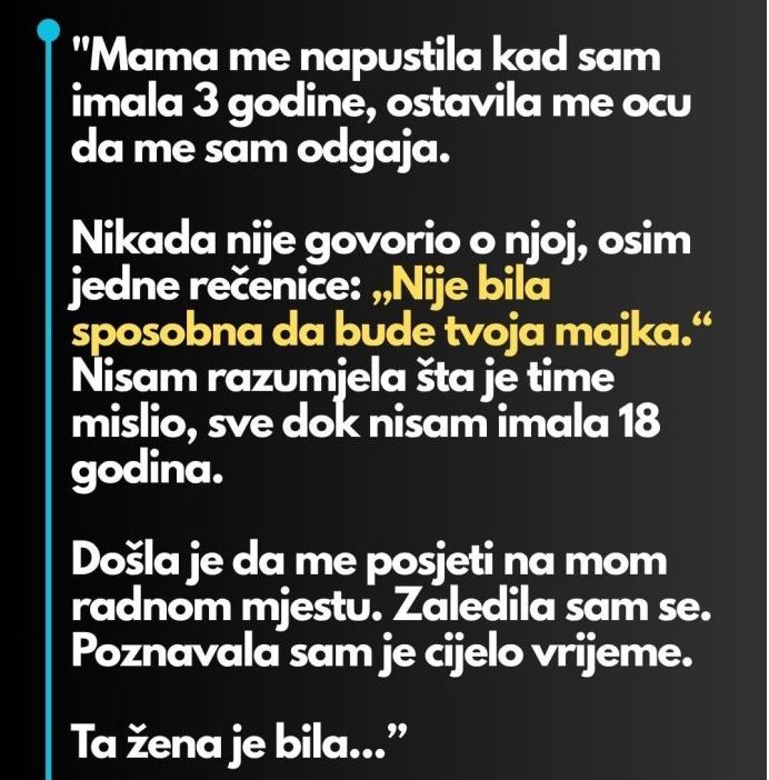 - Te reči su ostale u njenom srcu kao nepobitna istina, ali nisu je smirile. Nisu joj pomagale da razjasni razloge zbog kojih je majka otišla. Nije razumela, sve dok nije napunila 18 godina.