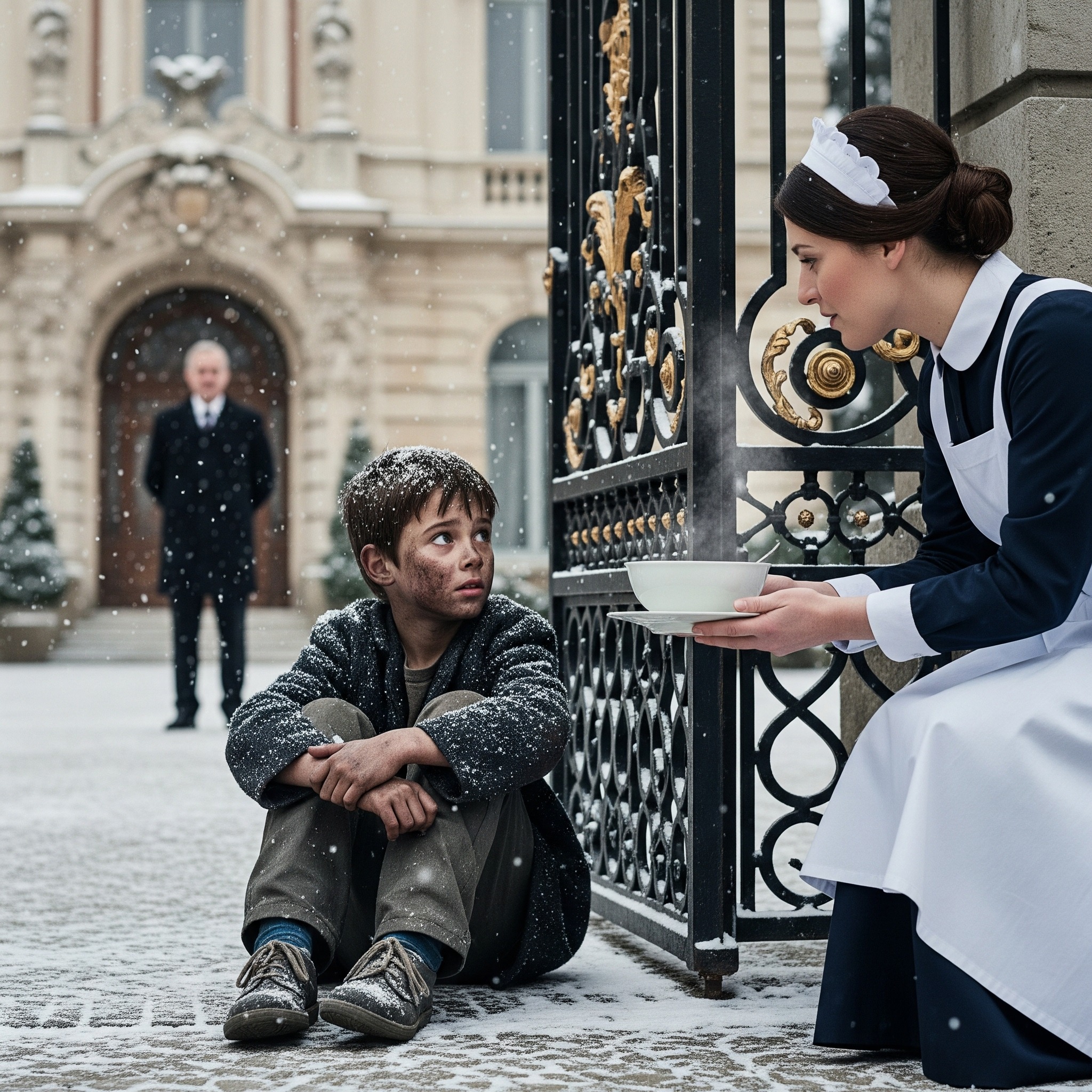 - Snijeg je padao bez prestanka, prekrivajući dvorište bijelim pokrivačem. Mira je brisala hladni mermer, kad je pogledom kroz prozor spazila sitnu sjenku. Bio je to dječak, bosonog i u poderanim cipelama, dok mu je dah izlazio u oblacima pare. Njegove oči, krupne i umorne, tražile su samo jedno — malo topline.
