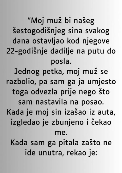 Ana je parkirala auto i brzo prišla svom sinu. Pitajući ga zašto ne ulazi u kuću kao obično, Luka je odgovorio s nevjerojatnim pitanjem: