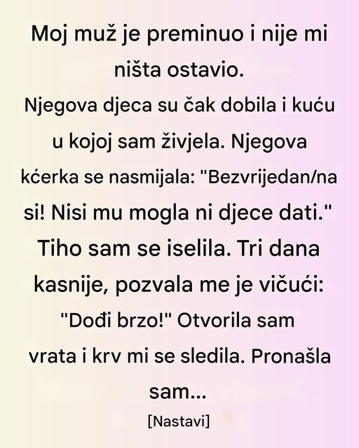 Moj muž je preminuo, a ostavština koju je za sobom ostavio bila je prazna. U trenutku kada sam saznala da nisam dobila ništa — ništa osim starog porodičnog doma i nekoliko dokumenta koji su izgledali kao obične papire — srce mi je bilo slomljeno…..