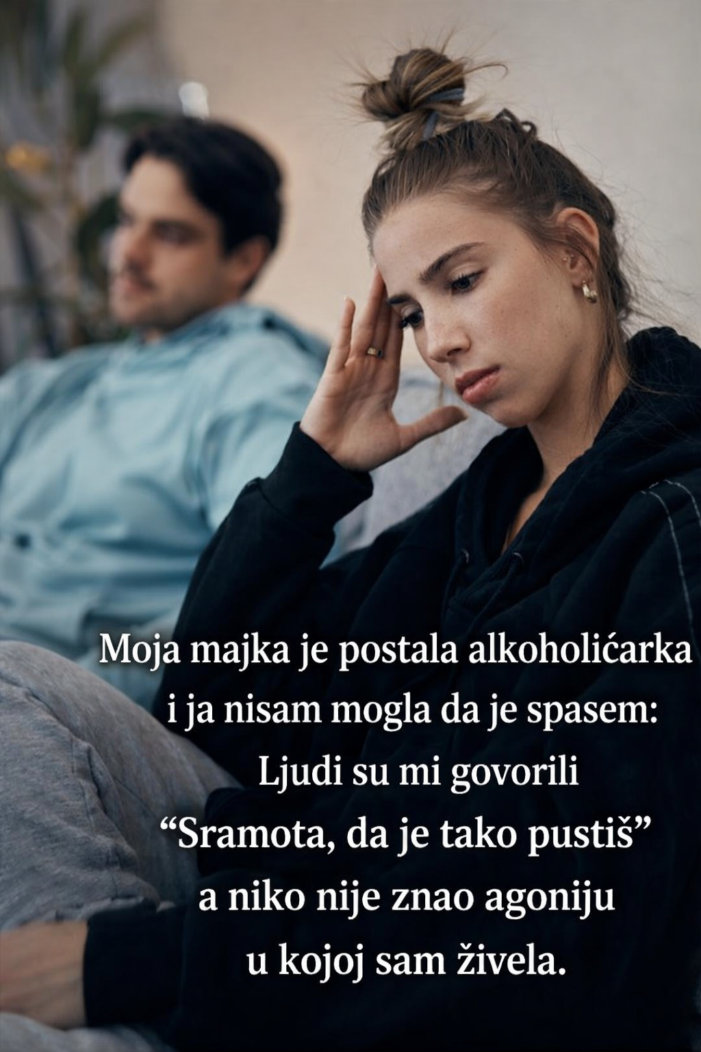 Iako je to bila odluka koja mi nije bilo lako donijeti, shvatila sam da nisam odgovorna za njen život. Na kraju, alkohol je uništio njezin život – postala je osoba koju su ljudi zaboravili, osoba koja je bila nesprešna, nemoćna, uvijek u borbi s tjeskobom i tugom, dok su svi pokušavali da je spase. No, ona nije tražila spasenje.