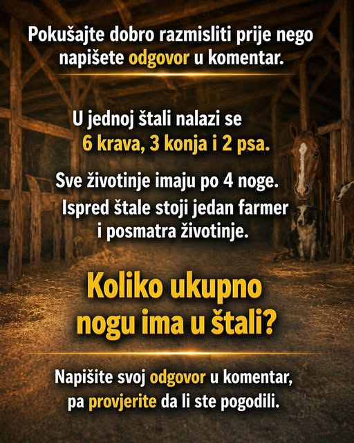 Ova zagonetka postavlja pitanje o broju nogu u štali, a njezino rješenje zahtijeva puno pažljiviji pristup nego što se čini na početku.