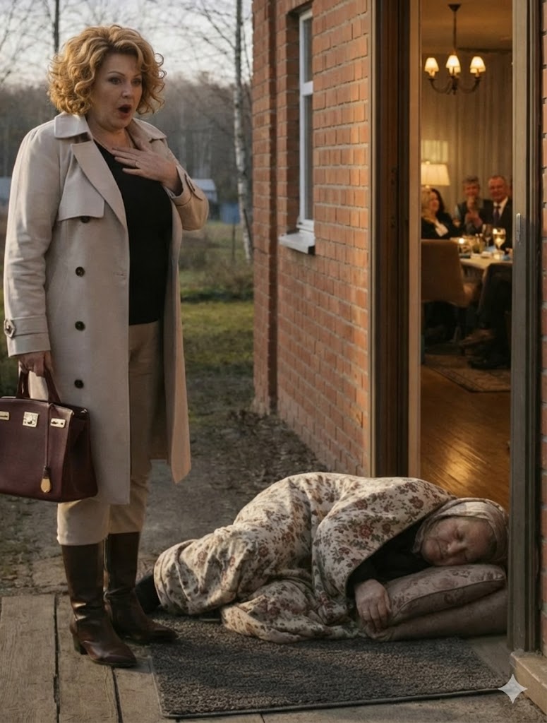 Kada sam se spustila pogledom, shvatila sam da nešto nije u redu. Na otiraču, pored vrata, ležala je žena. Umotana u tanki ćebe, spavala je u staroj, iznošenoj odeći, kao da je to bilo njeno mesto odvek. Srce mi je stalo. Prepoznala sam je — to je bila moja sestra. Osoba kojoj sam nekada poklonila ovu kuću. U tom trenutku, srce mi je zadrhtalo od bola, a suze su mi navrle na oči.