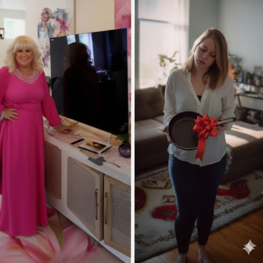 „Svi znate da je moj muž ove godine, kao i svake godine, poklonio svojoj mami prelep TV od 75 inča, dok je meni, kao uvek, dao… tiganj. Da, taj isti tiganj koji treba da napravim njegove omiljene palačinke. I evo, danas je trenutak kada ću vam reći da više neću to tolerisati. Sledeće godine, kada dođe njegov rođendan, poklonićemo mu… tiganj. I to onaj jeftiniji, sa lošim premazom. Možda to bude lep podsetnik da se zapita o vrednosti odnosa.”