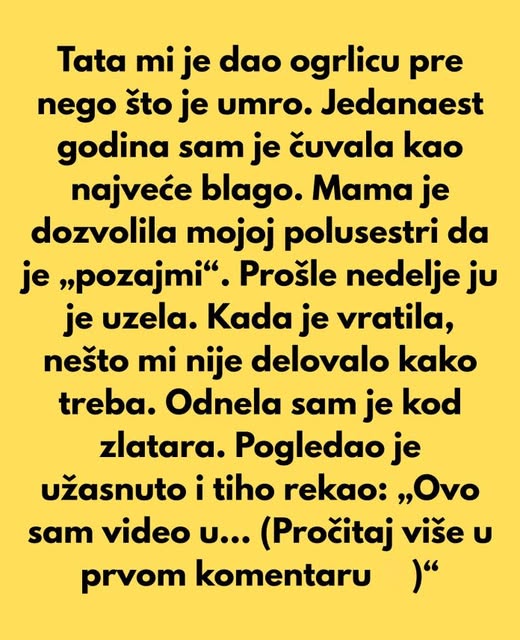 Taj gubitak je već sam po sebi bio ogroman udarac, jer otac nije bio samo roditelj, već oslonac, zaštita i neko ko je uvijek stajao iza nje. Ono što joj je ostavio nije predstavljalo samo imovinu, već uspomenu na njegov trud, rad i ljubav koju je godinama ulagao u porodicu.