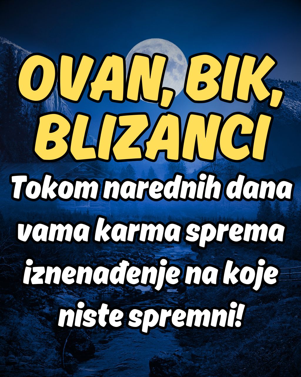 Za Ovnovi, Bikove i Blizance, naredni dani donose iznenađenja koja, bez obzira na to jesu li izazovna ili pozitivna, služe kao prilika za duhovni rast i samospoznaju. Ovaj period je savršen za razmišljanje o prošlim iskustvima, prihvatanje sadašnjosti i planiranje budućnosti. Karma nas vodi prema ravnoteži, mudrosti i osobnom osnaživanju kroz sve što dolazi.