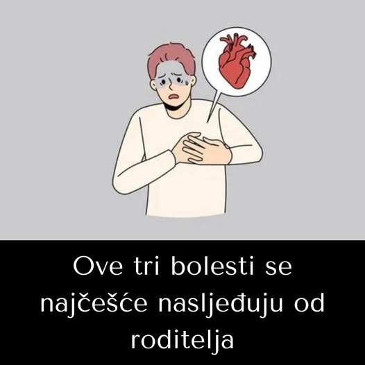 • Treća bolest koja je često naslijeđena je srčana bolest. Mnogi ljudi nisu svjesni da srčana bolest može biti nasljedna, ali istraživanja su pokazala da genetika igra značajnu ulogu u razvoju srčanih problema. Ako roditelji imaju visok krvni pritisak, srčane bolesti ili visok nivo holesterola, veća je vjerovatnoća da će njihove djece biti podložna istim problemima. Iako se genetski faktori ne mogu promijeniti, zdravi životni stil i pravovremeno liječenje mogu pomoći u smanjenju rizika od srčanih bolesti.