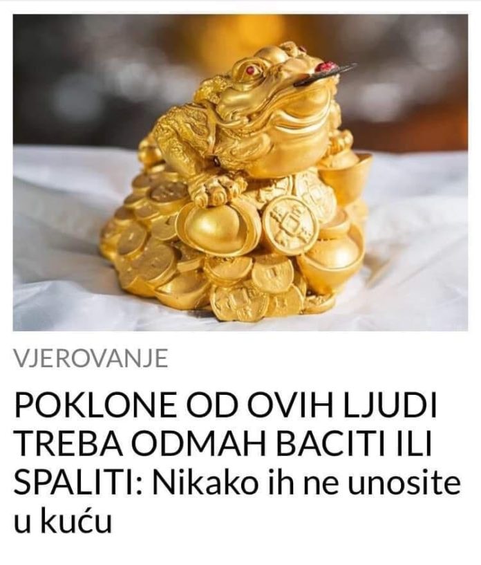 - Ovo je možda nezgodno i neobično za mnoge, ali u mnogim kulturama se vjeruje da negativna energija može biti prenesena na predmete. Poklon od osobe koja nije sretna zbog vašeg uspjeha ili sreće može nositi tužno i loše usmjereno zračenje koje ne donosi ništa dobro u vaš život. Bez obzira na to što takav poklon može izgledati bezopasno, važno je prepoznati ga kao potencijalni izvor problema u vašem domu.