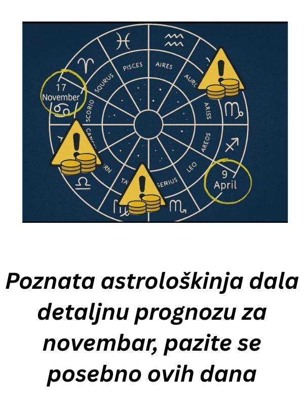 - Astrološkinja ističe i da postoje dani u mesecu koji će zahtevati dodatnu pažnju. Deveti, petnaesti i dvadeset sedmi dan u novembru donose napete aspekte i mogu izazvati nesporazume, kvarove ili konflikte. Tada je najbolje izbegavati rizične poteze i biti oprezan u komunikaciji. S druge strane, treći, osamnaesti i dvadeset četvrti dan biće ispunjeni srećnim okolnostima – odlični za pomirenja, nove početke i kreativne ideje.
