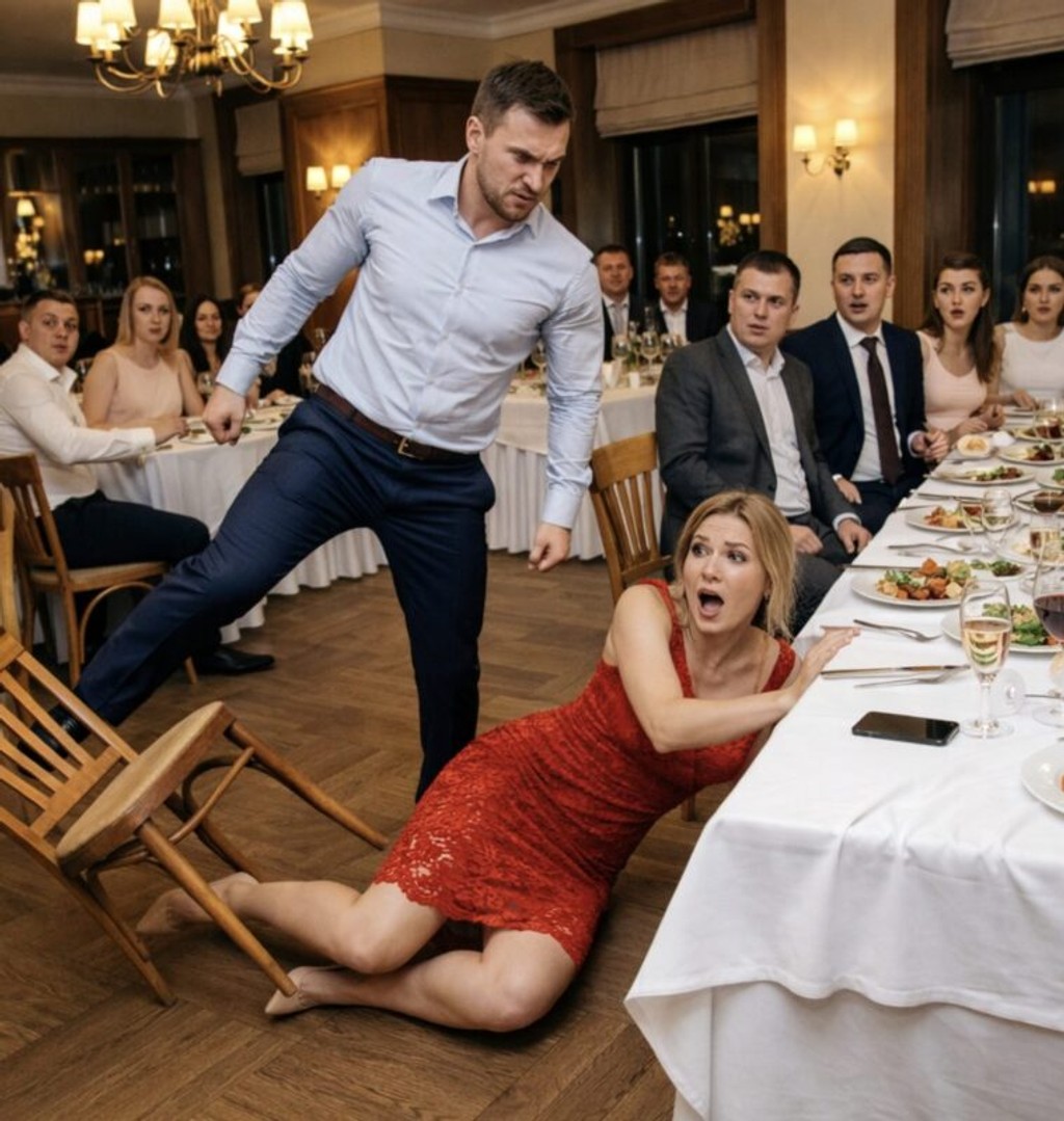 Anna je izgubila ravnotežu i snažno pala na pod. Laktom je udarila u ivicu stola, a viljuška iz njenog tanjira skliznula je na njeno koljeno, ostavljajući veliku tamnu mrlju od soja sosa na svijetloj haljini.