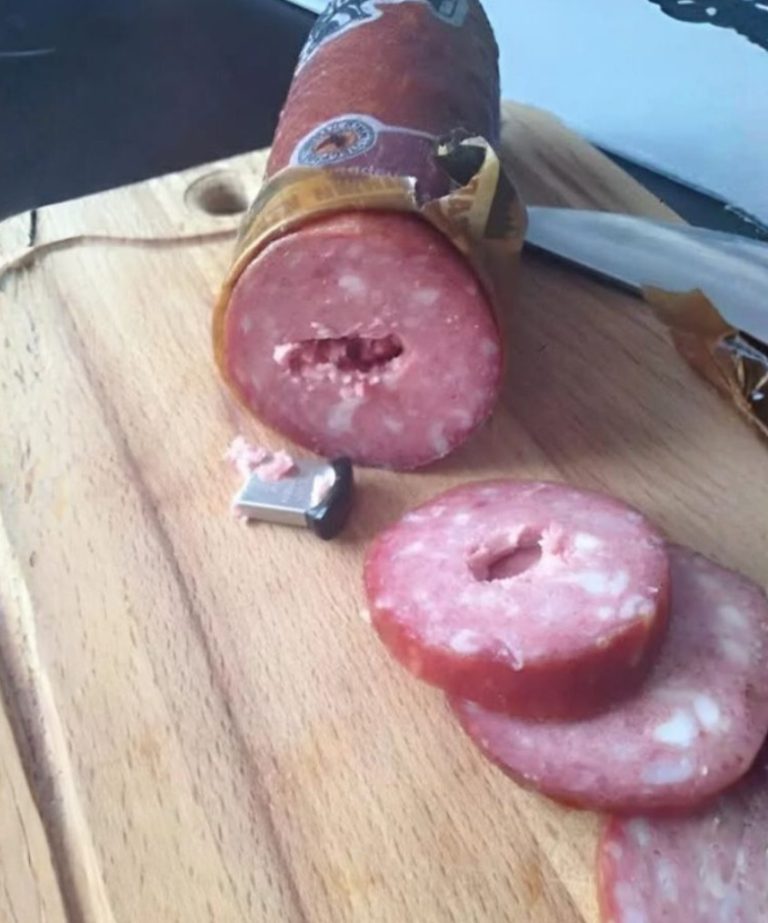 - Kada je stigla kući, napravila je brzinski sendvič i odložila ostatak kobasica za sljedeći dan. Ništa neuobičajeno – sve je izgledalo i mirisalo sasvim u redu. Međutim, već sutradan, dok je pripremala doručak, dogodio se trenutak koji će je zauvijek promijeniti. Dok je rezala jednu od kobasica, nož je naišao na nešto tvrdo, nešto što svakako nije trebalo biti u hrani. Iz unutrašnjosti kobasice, prekrivene slojem mljevenog mesa, virio je mali USB uređaj.