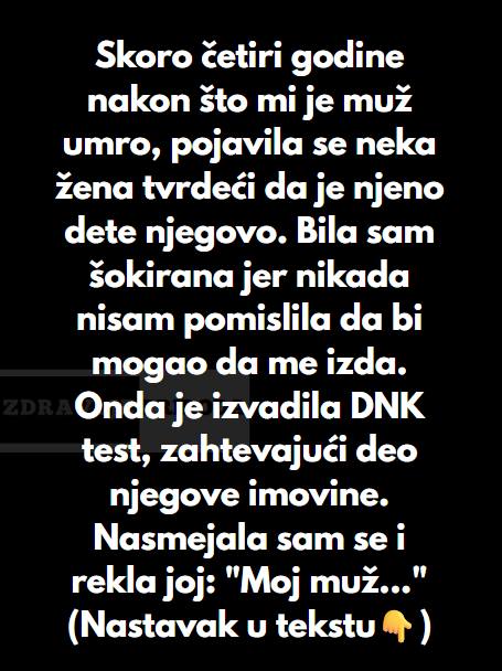 Bila je mirna, gotovo hladna, s papirima u ruci i pogledom koji me nije ni pokušavao upoznati. Rekla je moje ime, kao da me poznaje godinama. Zatim je izgovorila rečenicu koja mi je izbila zrak iz pluća: „Ja imam dijete s vašim pokojnim mužem.“