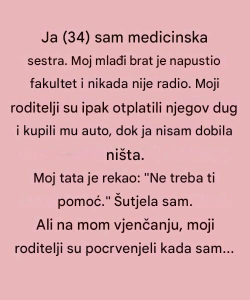 Nekoliko puta je pokušavala da razgovara sa roditeljima, nadajući se da će razumeti. Ali svaki put su je samo odgurnuli. Otac joj je hladno govorio: “Ne treba ti pomoć.” A ona je ćutala, stisnula zube i radila još napornije. Na kraju, shvatila je da nikada neće dobiti ništa od njih, iako je toliko toga dala.