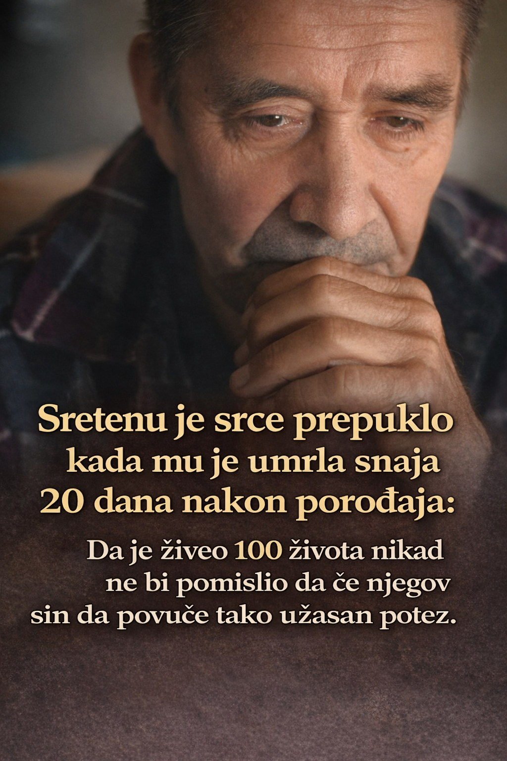 Međutim, nakon svega što su prošli, dolazi tragedija. Danka je, samo 20 dana nakon porođaja, iznenada preminula. Sreten je bio užasnut i nije mogao da veruje šta se dogodilo. Njegov svet je srušen, a gubitak njegove snaje i majke njegove unuke bio je strašan udarac za celu porodicu. Prolazili su dani ispunjeni tugom, a Sreten je morao da se bori sa sopstvenim osećajem nemoći.