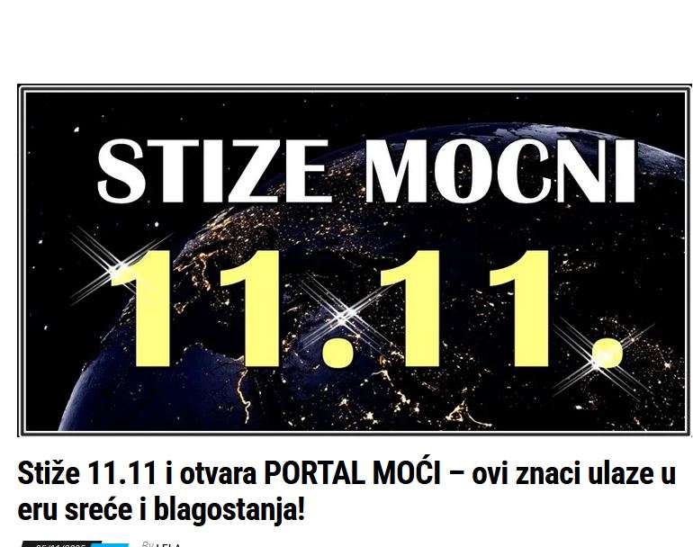 - Kao simbol duhovnog buđenja, 11.11 je trenutak kada misli postaju stvarnost, kada želje manifestuju brže nego ikad. Ovo je dan kada se vrata sudbine otvore široko, dopuštajući onima koji su se trudili, verovali i strpljivo čekali da konačno uživaju u plodovima svog rada. Ovaj numerološki fenomen nudi jedinstvenu priliku za sve, a za neke zodijačke znakove, ovo je početak neverovatnog perioda blagostanja.