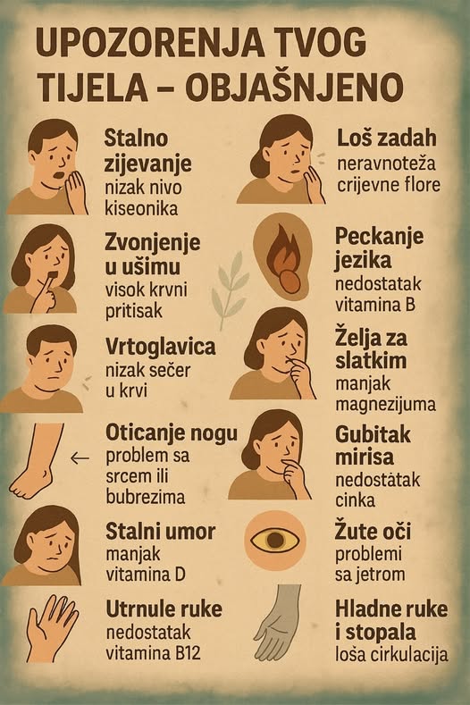 - U konačnici, poruka je jasna: samo tijelo najbolje zna kada mu nešto ne odgovara — ali to zna samo ako pažljivo slušamo. Nemojte zanemarivati signale: to nisu samo nelagode, to su prilike da reagujete na vrijeme i sačuvate zdravlje. Jednostavne promjene u svakodnevnim navikama, svjestan pristup ishrani, odmoru i kretanju, i — ako treba — razgovor sa ljekarom — često su dovoljni da se probudi energija, vrati vitalnost i uspostavi ravnoteža koja nam nedostaje.