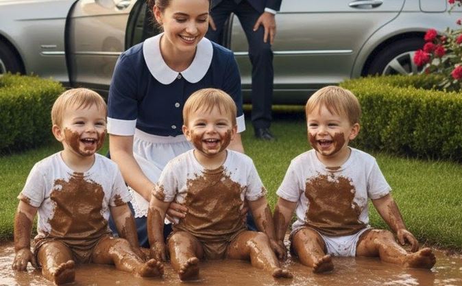 Ethan je očekivao da će nakon napornog dana ući u svoju kuću i uživati u mirnom, tišinom ispunjenom okruženju. Međutim, sve što ga je dočekalo bila je nespretna, haotična scena u njegovom savršenom vrtu. Njegova deca – Lily, Oliver i Noah – bila su potpuno mokra, prekrivena slojevima blata, i smejala su se od srca, bacajući blato jedni na druge. U blizini njih, nova dadilja Grace Miller, bila je savršeno obuena, ali i ona se u potpunosti zaprljala u tom ludom, neurednom veselju. Ethan, navikao na strogost i disciplinu, odmah je reagovao. U njegovom svetu, blato je bilo simbol neurednosti, neuspeha. On je bio taj koji je naučen da sve mora biti pod kontrolom.