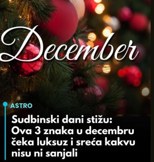 U današnjem članku vam pišemo na temu tri horoskopska znaka kojima decembar donosi poseban osjećaj napretka i zadovoljstva.proćitajte…