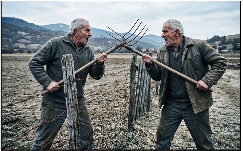 Svi su ih znali kao bliske prijatelje, kao ljude koji bi dali jedan drugome poslednji dinar, koji su zajedno sijali, brali plodove, i zajedno tugovali za preminulima. Ali, sve se promenilo tog jednog dana kada je nesrećna premera, koja je razgraničavala njihova imanja, postala ta koja će doneti kraj njihove bliskosti. Pola metra, samo pola metra blatnjave međe, postalo je uzrok koji je pretvorio dva čoveka u najljuće neprijatelje.