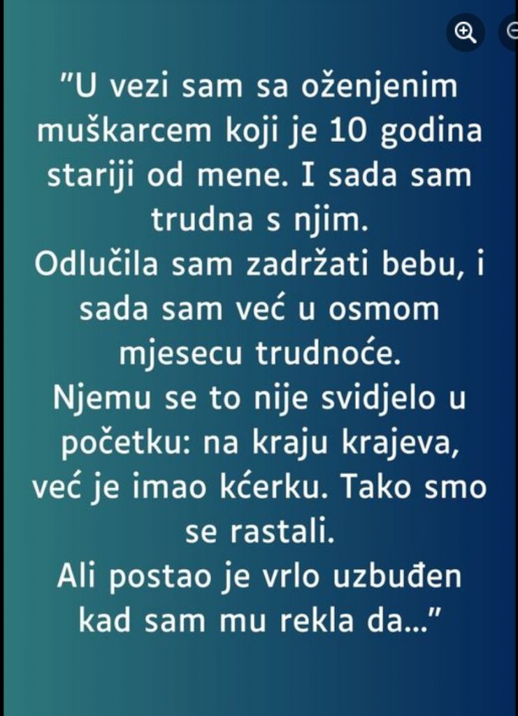 - Kako je vreme prolazilo, sve je izgledalo kao bajka, dok jednog dana nisam saznala da sam trudna. Sjećam se tog trenutka. Danima sam razmišljala o svemu – o budućnosti, o njemu, o bebi koja je već počela kucati u mom stomaku. Iako su svi moji prijatelji i porodica slavili, znala sam da me čeka izazov. Kada sam mu to saopštila, njegova reakcija nije bila onakva kakvu sam očekivala. Izgledalo je da je šokiran i zabrinut, što me pomalo iznenadilo. Razmišljao je o tome s mnogo opreza, s razumijevanjem, ali i sa sumnjama. Iako je bilo jasno da je imao kćerku iz prethodnog braka, nije bio siguran kako će se nositi s novim životom koji će morati podijeliti sa mnom.