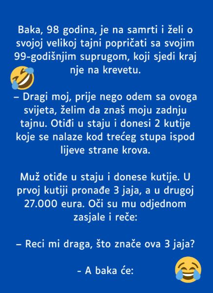 - Selo je procvjetalo od smijeha, a vicevi su postali najvažniji dio njihove svakodnevne rutine. Uskoro su svi počeli smišljati vlastite šale, i selo je postalo jedno od najsmješnijih mjesta u zemlji. Svi su naučili da i kada život donese probleme, najbolje je nasmijati se i uživati u trenutku. Iako je Luka bio najstariji, pokazao je svima da nikad nije prekasno za smijeh i radost.
