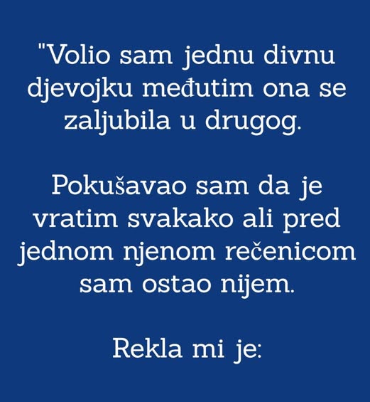 Slušala me je. Gledala me onim istim očima zbog kojih sam se zaljubio. I tada mi je rekla jednu rečenicu.