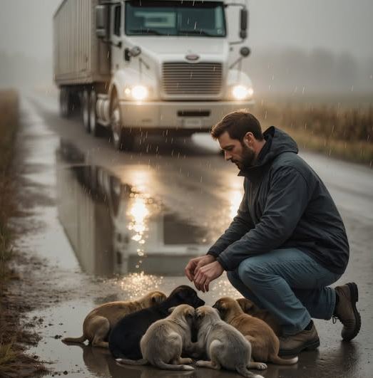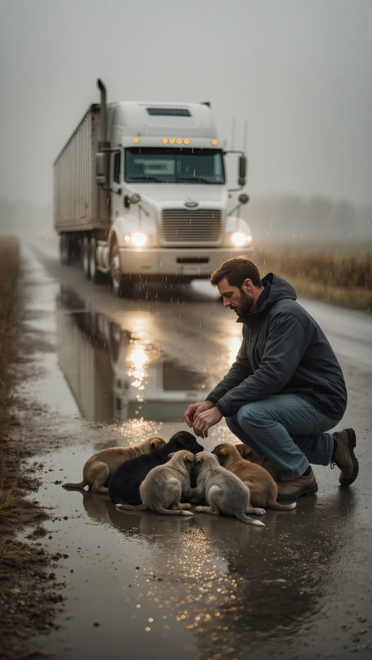 U tom trenutku, na sredini ceste ugledao je nešto što mu je u početku izgledalo kao rasuto smeće. No kako je vozio bliže, slika je postajala sve jasnija. Nije bio vjetar taj koji je pomicao te male siluete – bila su to štenad, prestrašena, mokra i zbijena jedno uz drugo. Bilo ih je najmanje dvadeset, svih boja i veličina, a sve su izgledale ranjivo i bez pomoći.