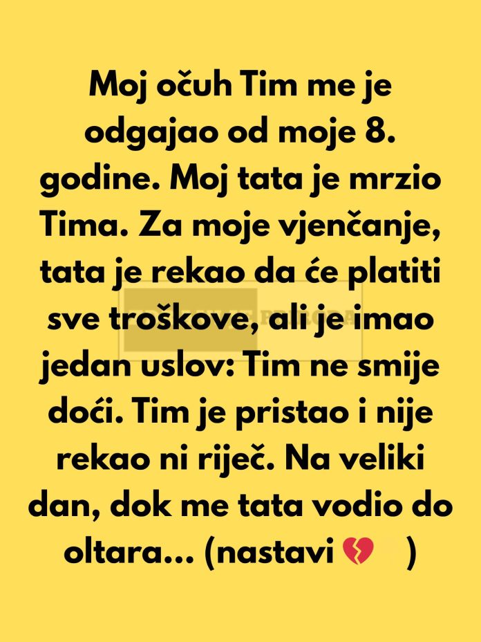 Kada je došao trenutak njenog vjenčanja, ona se našla pred teškom odlukom. Željela je da njen otac bude prisutan na tom važnom trenutku u njenom životu, ali njen otac je postavio uvjet: Tim ne smije biti prisutan na vjenčanju. Taj uvjet slomio je njeno srce, jer je voljela i poštovala svog očuha, koji je bio uz nju kroz sve godine, ali je također željela zadovoljiti svog oca i ne izazvati razočaranje. Iako Tim nije postavljao nikakva pitanja, bio je suzdržan i nije govorio ništa, ona je osjećala duboku tugu i osjećala se kao da gubi nekog jako važnog.