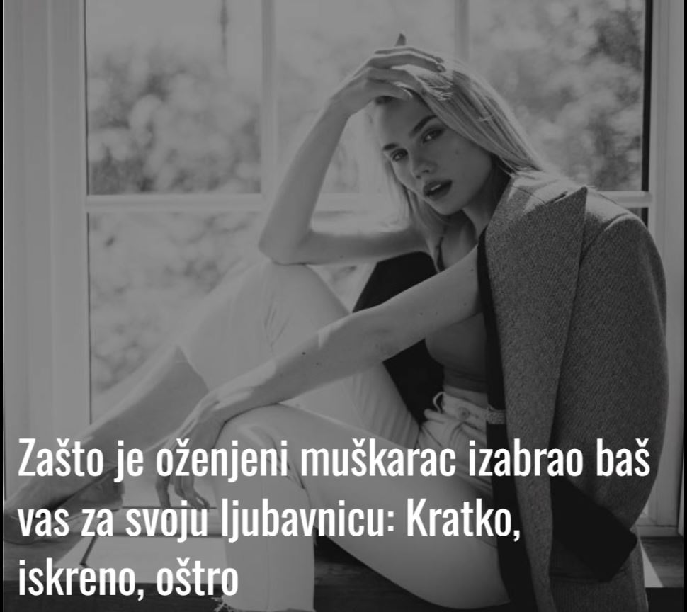 - Kada se sve sabere, jasno je da ljubavnica nije izabrana zbog sudbine niti zbog posebne čarolije. Ona je izabrana jer je u tom trenutku bila kombinacija blizine, dopune, hraniteljke ega i pristanka. I koliko god to bilo teško prihvatiti, upravo u toj surovosti leži odgovor na pitanje koje mnoge žene sebi postavljaju.