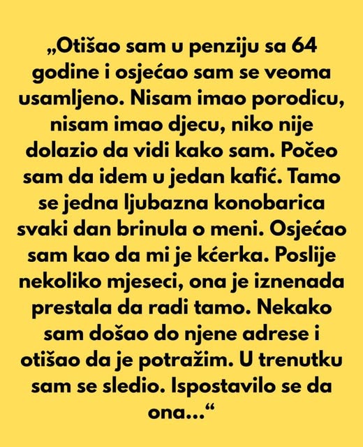 Međutim, kao što to obično biva, život ne teče onako kako se nadate. Posle nekoliko meseci, konobarica je iznenada prestala da dolazi na posao. Niko mi nije rekao ništa, ali sam primetio da je nestala. To je bio šok. U prvi trenutak nisam znao šta da radim. Osećao sam se izgubljeno, kao da je deo mog sveta nestao.
